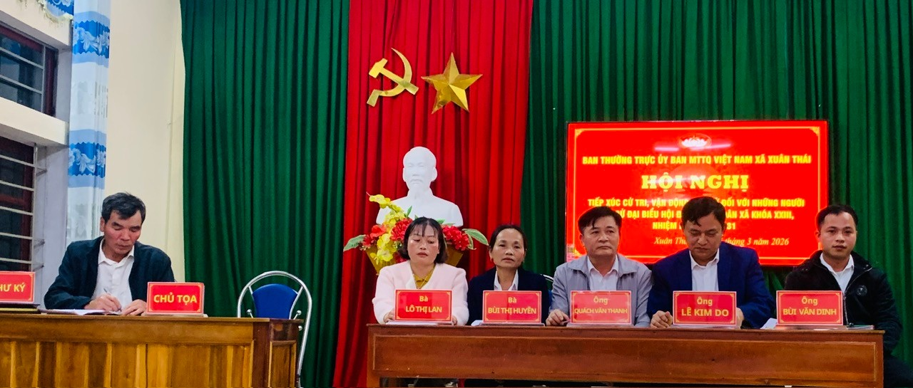 Tối ngày 05/3/2026, tại Nhà văn hóa thôn Đồng Lườn, xã Xuân Thái, Ban Thường trực Ủy ban MTTQ xã Xuân Thái đã tổ chức Hội nghị tiếp xúc cử tri, vận động bầu cử đối với những người ứng cử Đại biểu Hội đồng nhân dân xã Xuân Thái khóa XXIII, nhiệm kỳ 2026 - 2031, thuộc đơn vị bầu cử số 1, gồm Tổ bầu cử số 1 và số 2 của thôn Yên Khang và thôn Đồng Lườn.