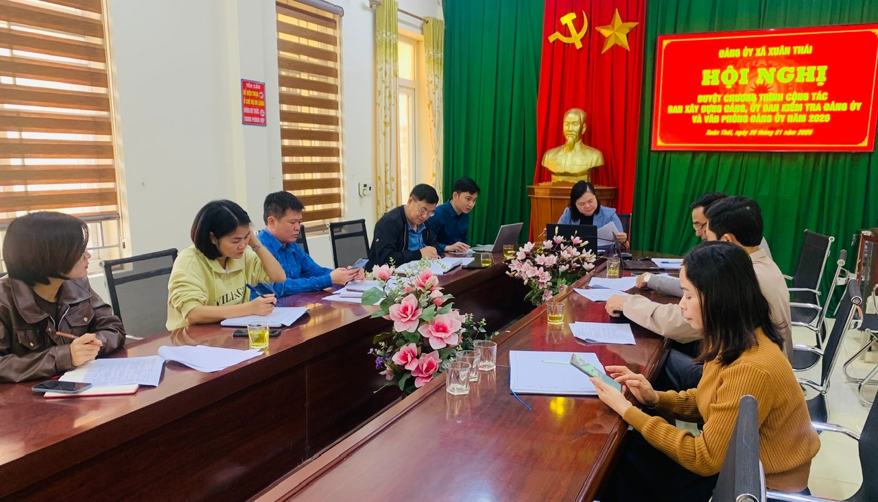 Thực hiện Quy chế làm việc của Đảng ủy nhiệm kỳ 2025–2030 và Chương trình công tác cấp ủy tháng 01 năm 2025, sáng ngày 20 tháng 01 năm 2026, Thường trực Đảng ủy xã Xuân Thái đã tổ chức Hội nghị duyệt Chương trình công tác năm 2026 đối với Ban xây dựng Đảng, Ủy ban Kiểm tra Đảng ủy và Văn phòng Đảng ủy.
